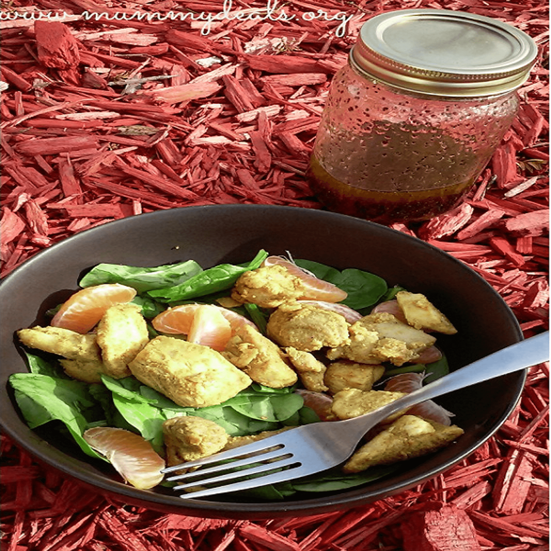 I’m awful about eating salads in the winter but this is a great winter salad with poppy seed dressing. I’d just much rather have warm veggies and when Hubs won’t eat a salad that’s tricky. But then my friend and I came up with adding cuties to our salad and it was delish and because cuties are so plentiful right now that’s why i like to use them. I simply take spinach, cuties and then curried chicken and throw it together with the poppyseed dressing.
