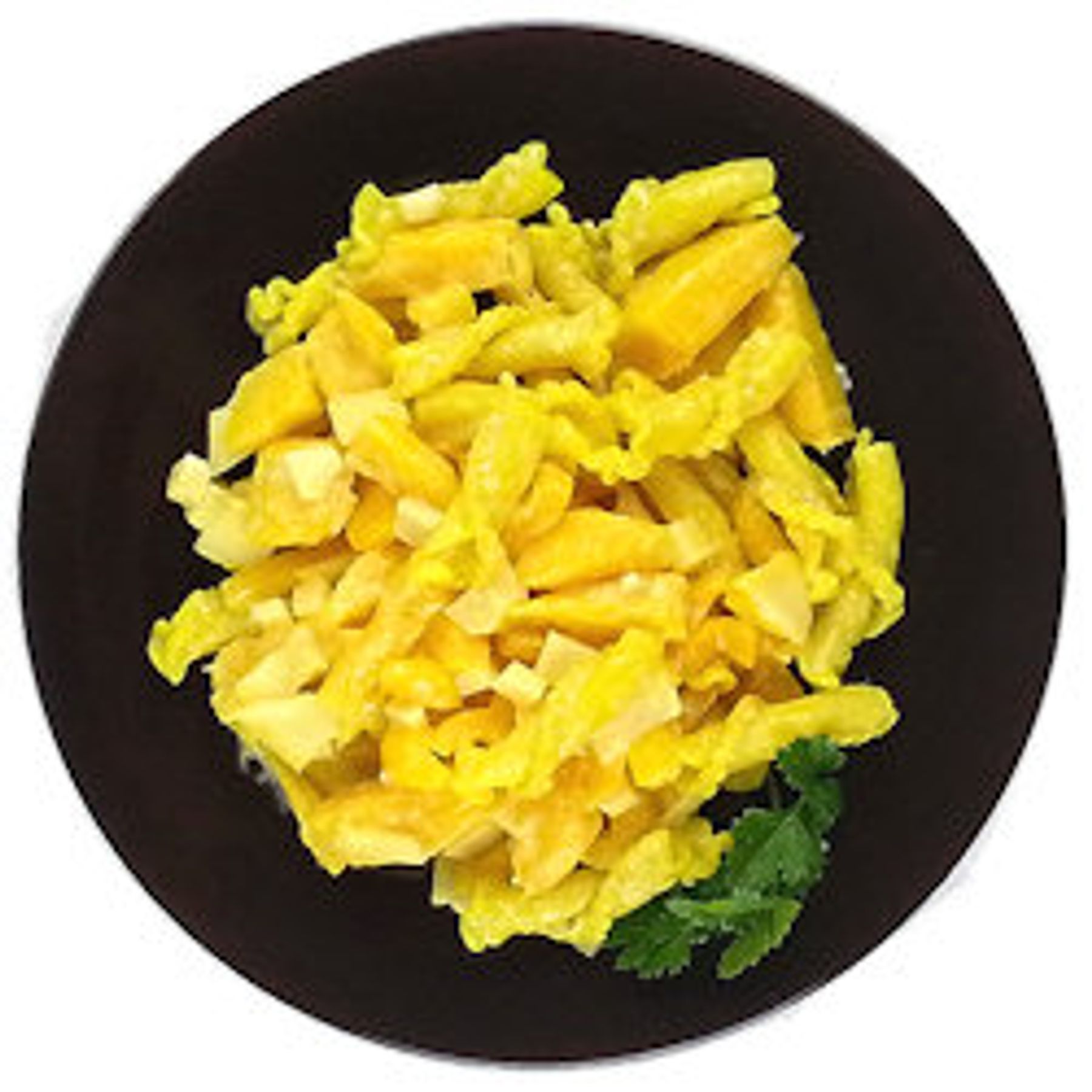 1. Cook the pasta according the the directions on the packaging and add 1 teaspoon of turmeric to the water.