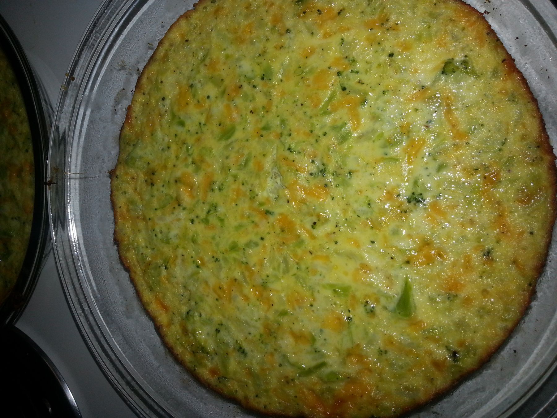 Preheat oven to 350 degrees. Spray a 9 inch pie pan with a cooking spray; set aside. Cook broccoli according to package directions until soft enough to chop coarsely. (I used my food processor.