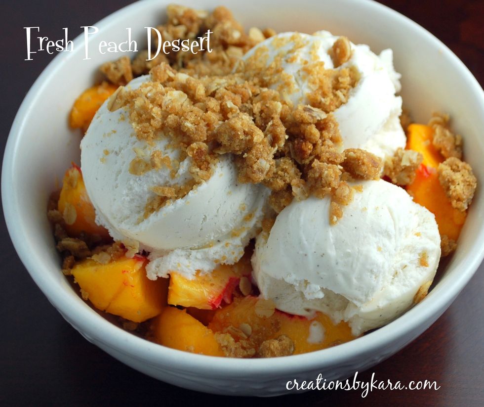 Fresh peaches topped with ice cream and a buttery oat topping. Simple, but oh so yummy!