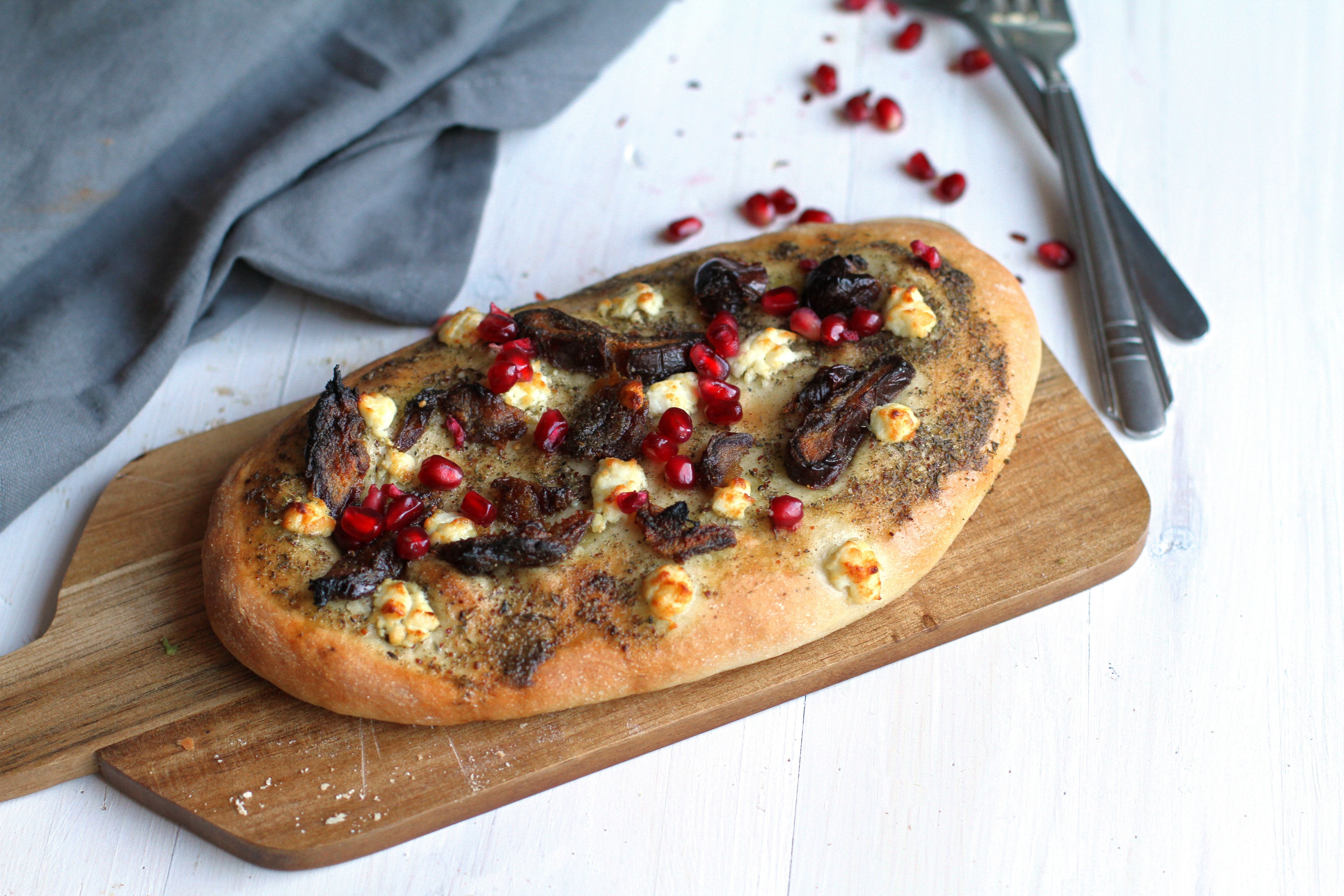 Za'atar Date and Goat Cheese Naan with Pomegranate