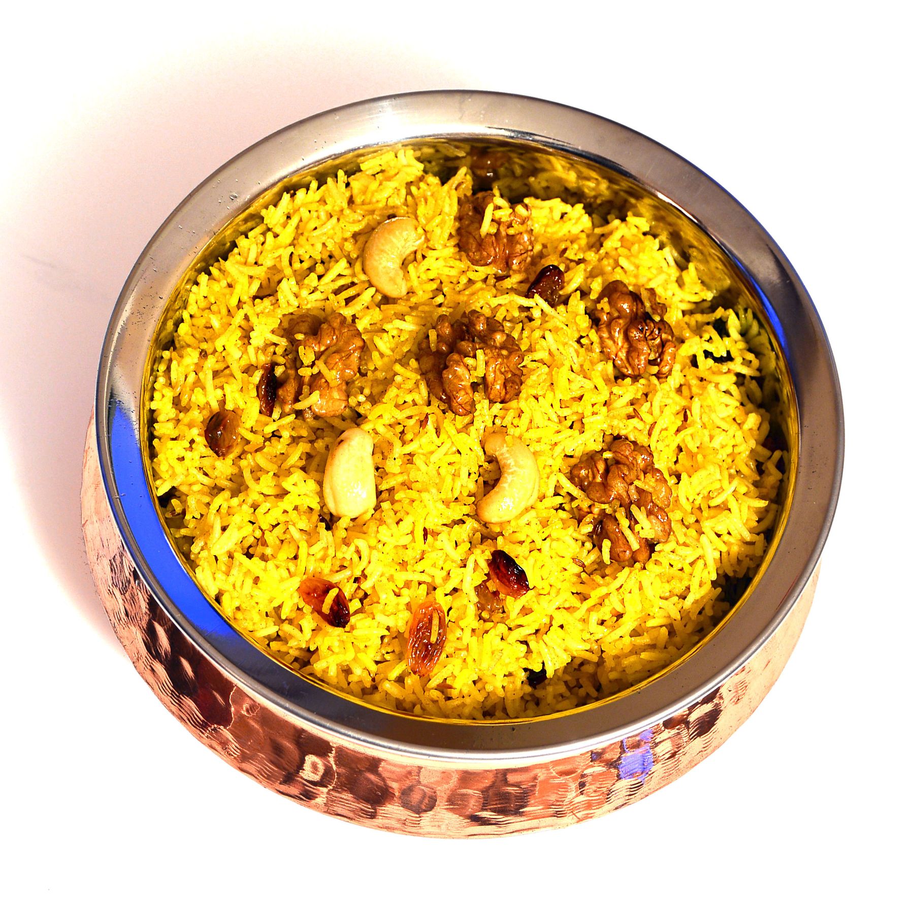 Zafrani Pulao simply means Saffron Rice and like most other pulao versions it consists of rice cooked with saffron. In addition, dry fruits are added to the pulao which gives the dish its taste, aroma and luxury.