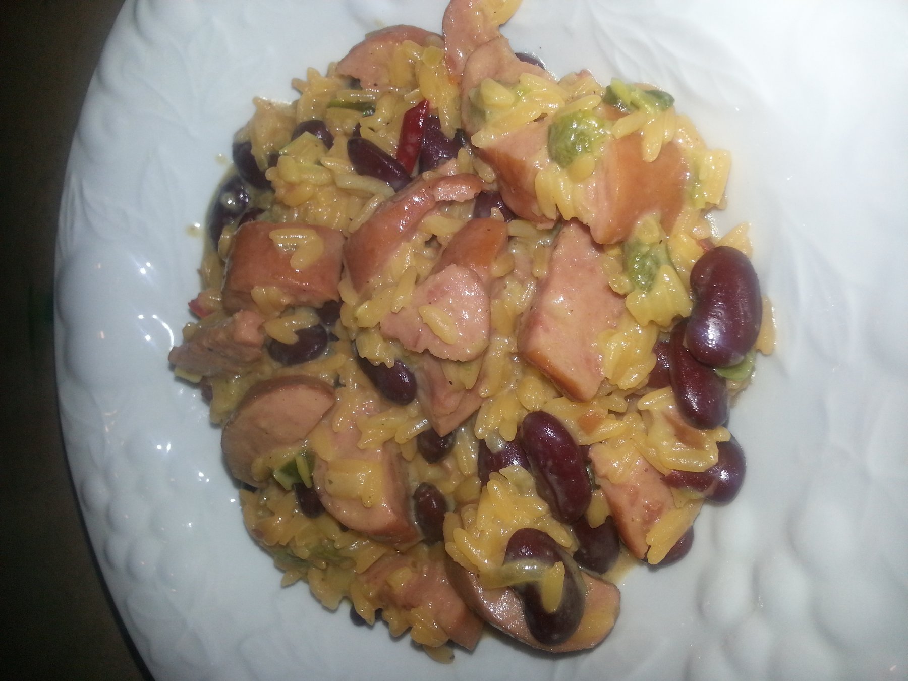 A jazzed up jambalaya cheesy rice one-pot meal!