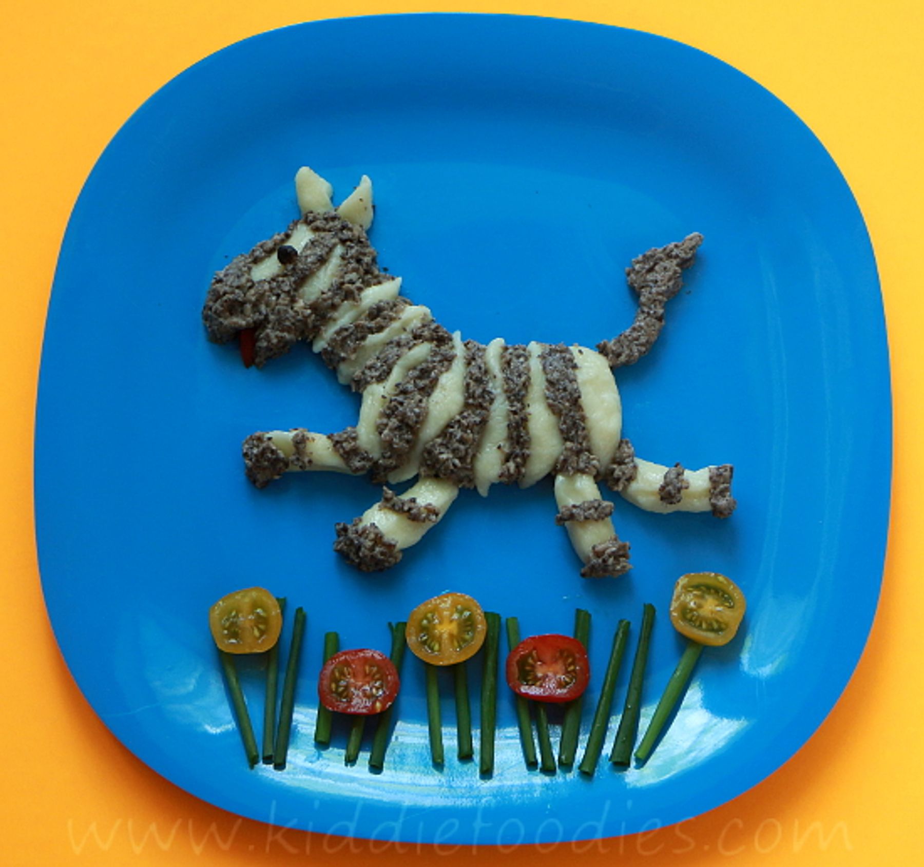 Homemade potato gnocchi with mushrooms and ricotta, presented as a funny and cute zebra. Easy and healthy recipe for kids that even picky eaters will love!