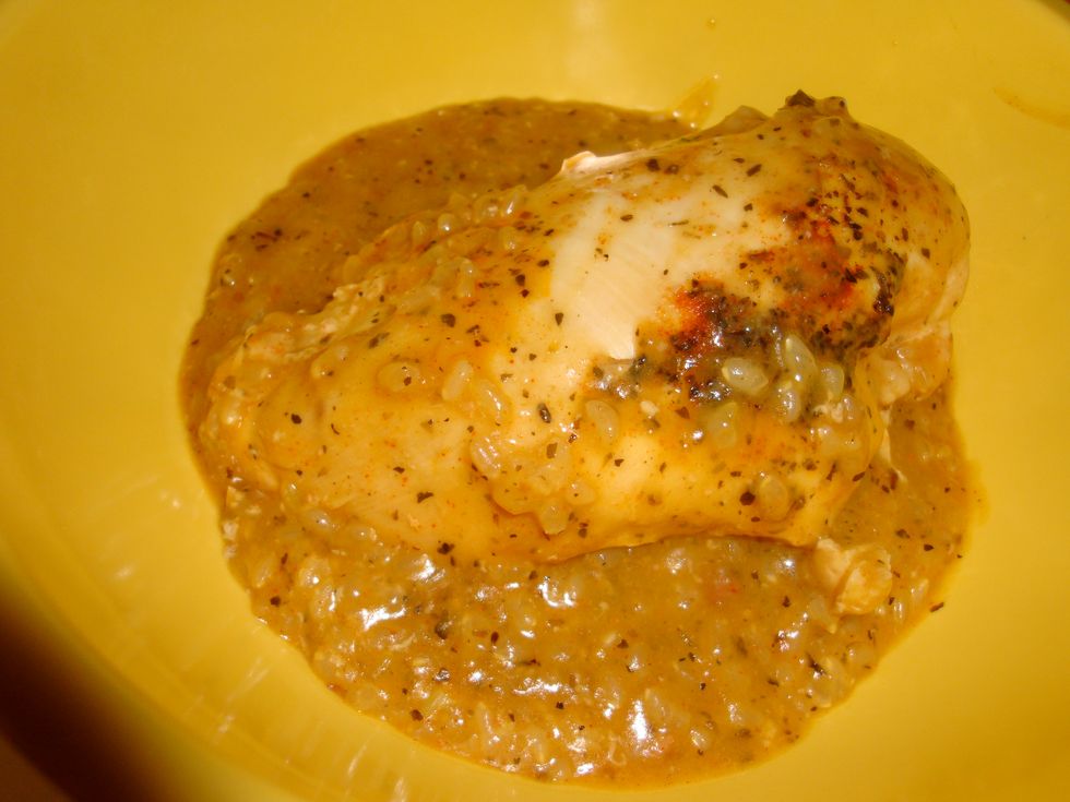 4. Bake at 375 degrees Fahrenheit for one hour, or until the rice is tender and the chicken cooked through.