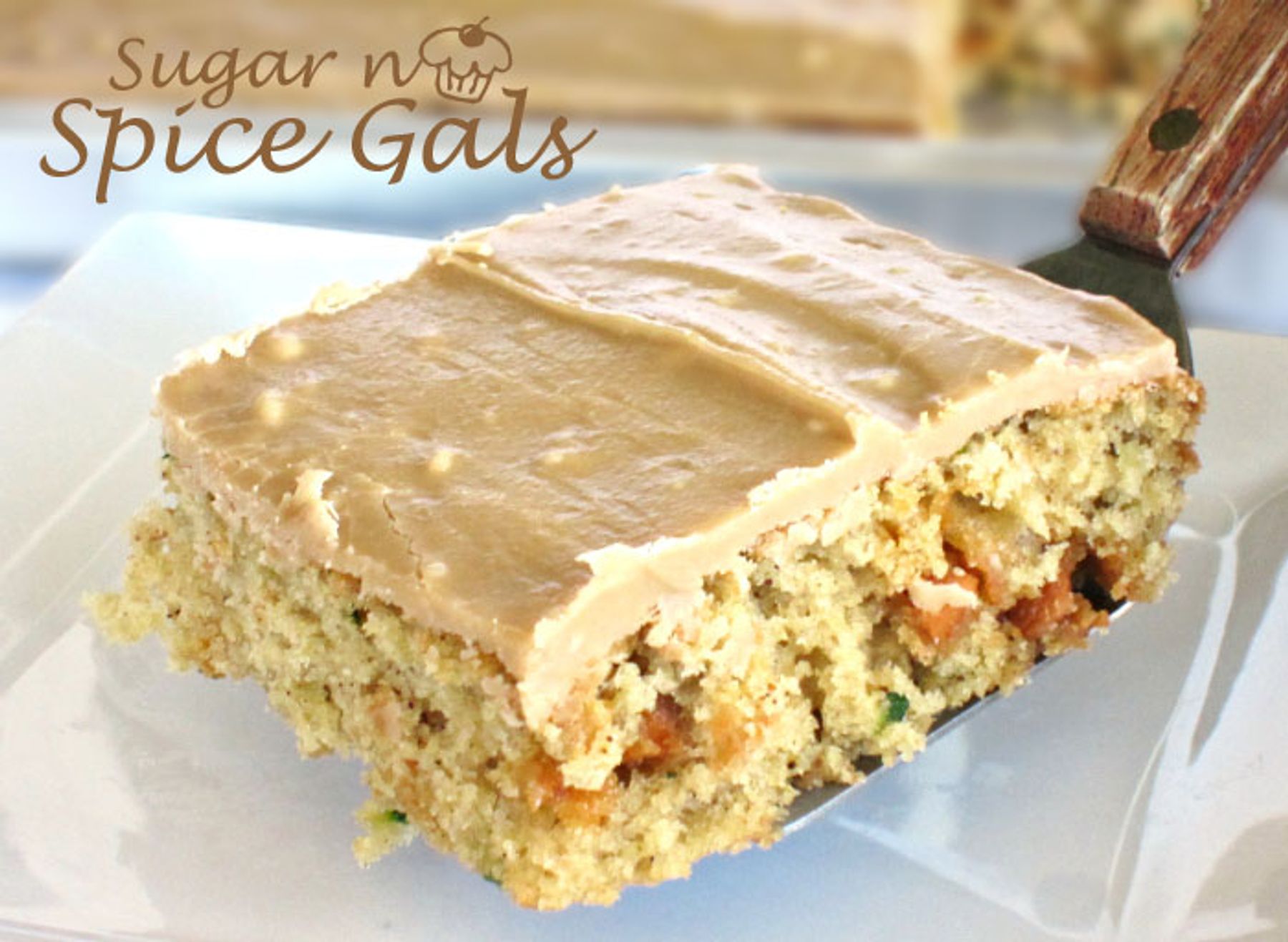 If you have those zucchini's that you neglected to pick and now they are as big as a small baseball bat, shred them and make some yummy zucchini bars! These are a big hit in our family, and by adding the caramel frosting on top we have a home run!