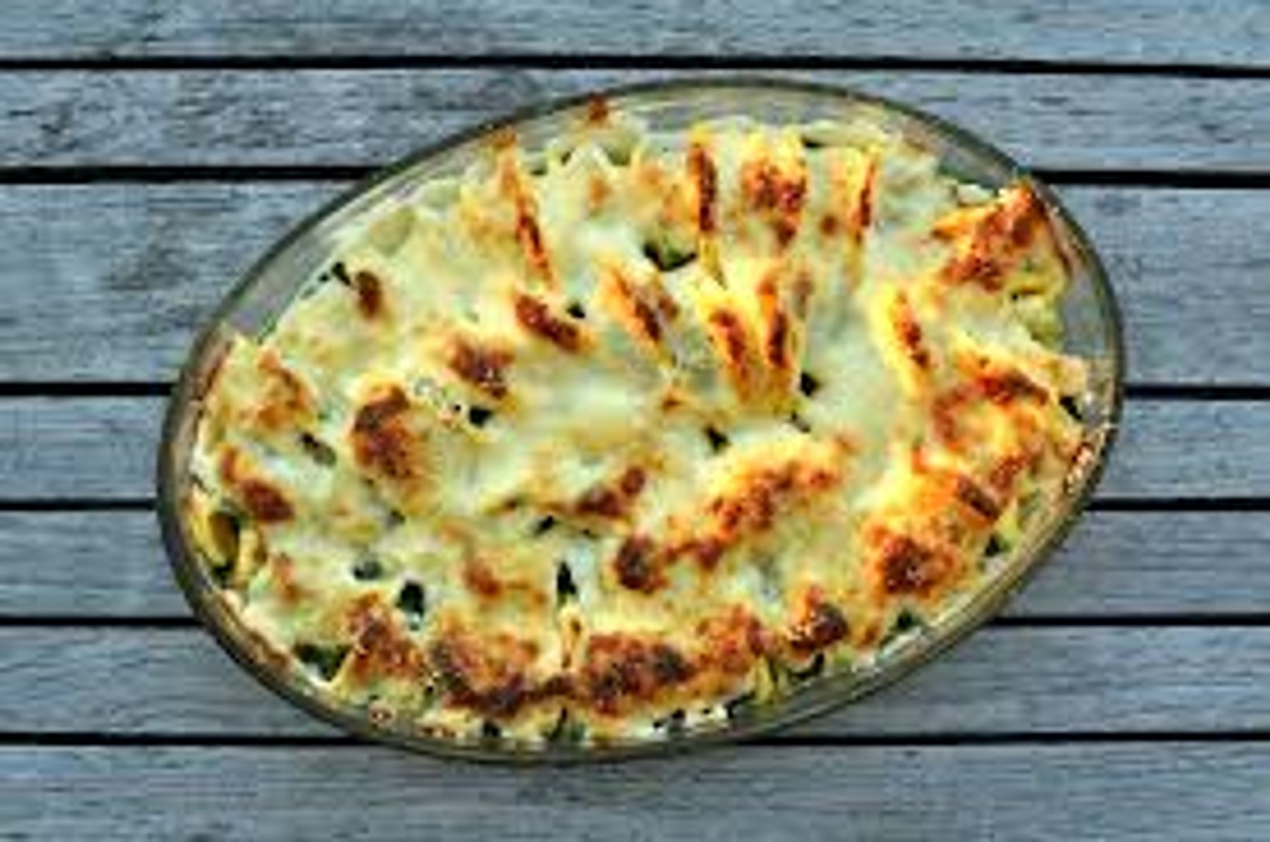 Melt the butter in a very large (12-inch) saute pan and cook the onions over low heat for 20 minutes, or until tender but not browned. Add the zucchini and cook, covered, for 10 minutes, or until tender. Add the salt, pepper, and nutmeg and cook uncovered for 5 more minutes. Stir in the flour. Add the hot milk and cook over low heat for a few minutes, until it makes a sauce. Pour the mixture into an 8 by 10-inch baking dish.