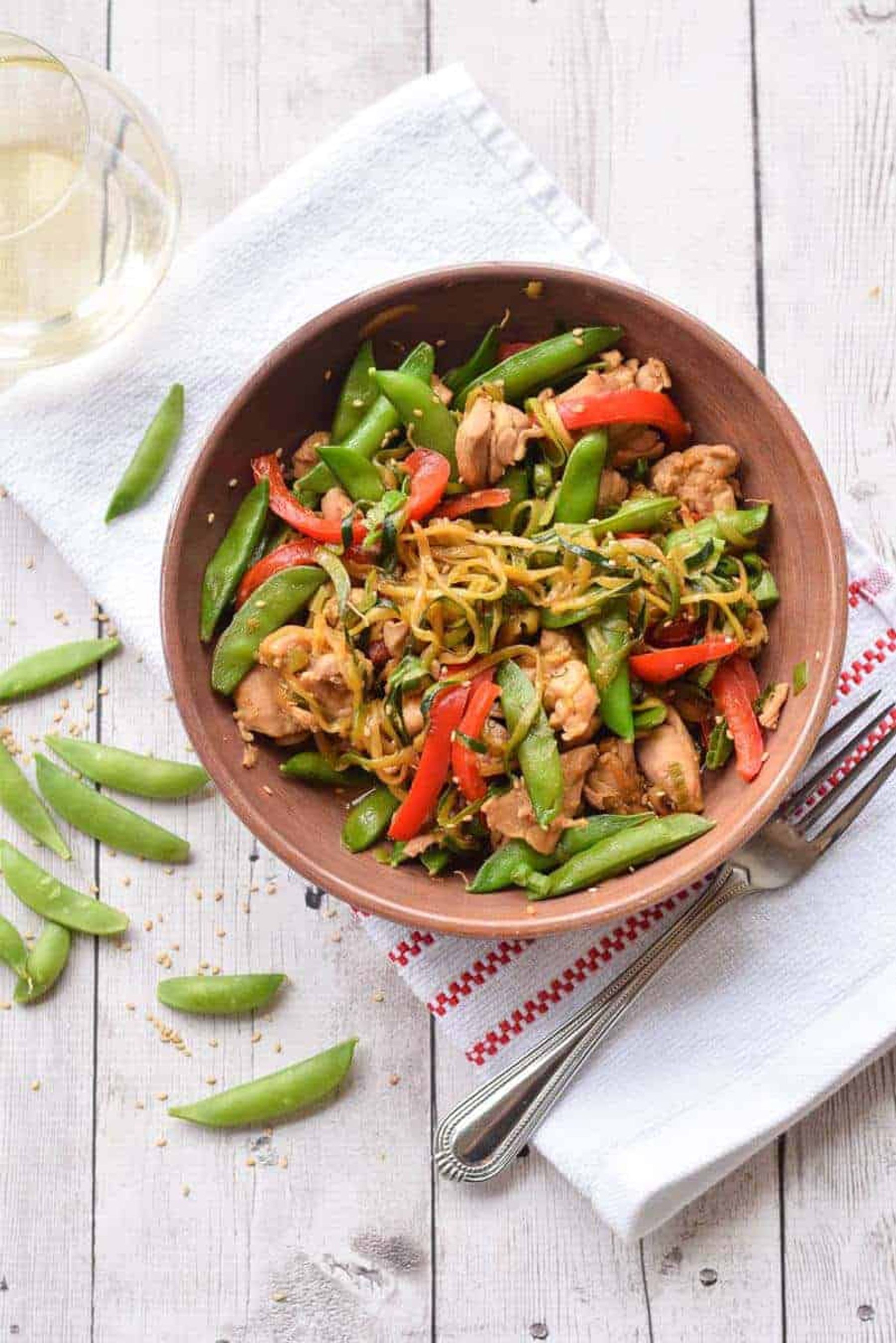 Zucchini Noodle Stir Fry with Chicken · Seasonal Cravings Karen Kelly February 22, 2020 58 www.seasonalcravings.com try it See the full directions on my site Zucchini Noodle Stir Fry with Chicken and Peppers is a healthy, low carb, gluten free dinner that's ready in less than 30 minutes. seasonalcravings.com