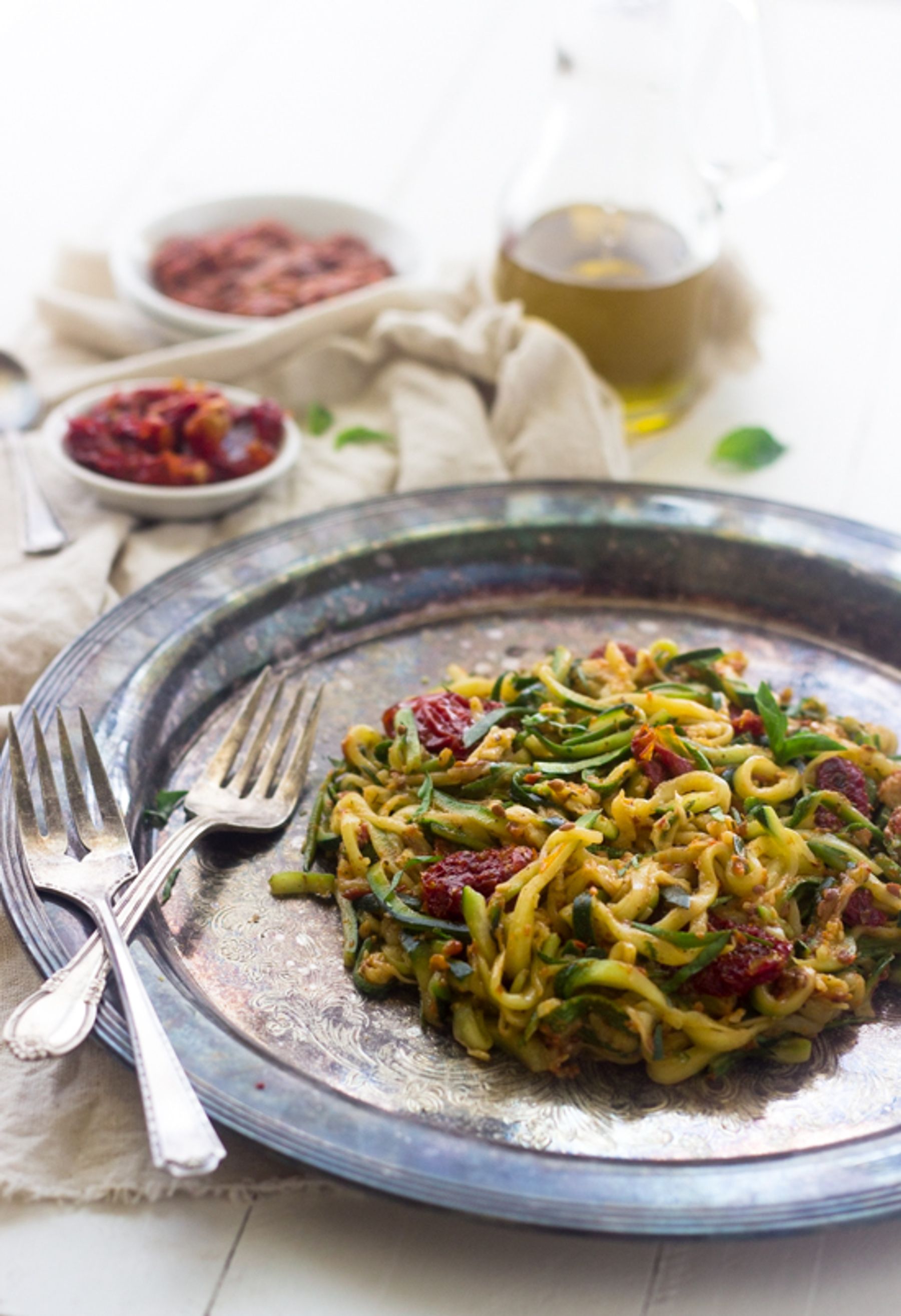 Zucchini Noodles wit Raw Sun Dried Tomato Sauce