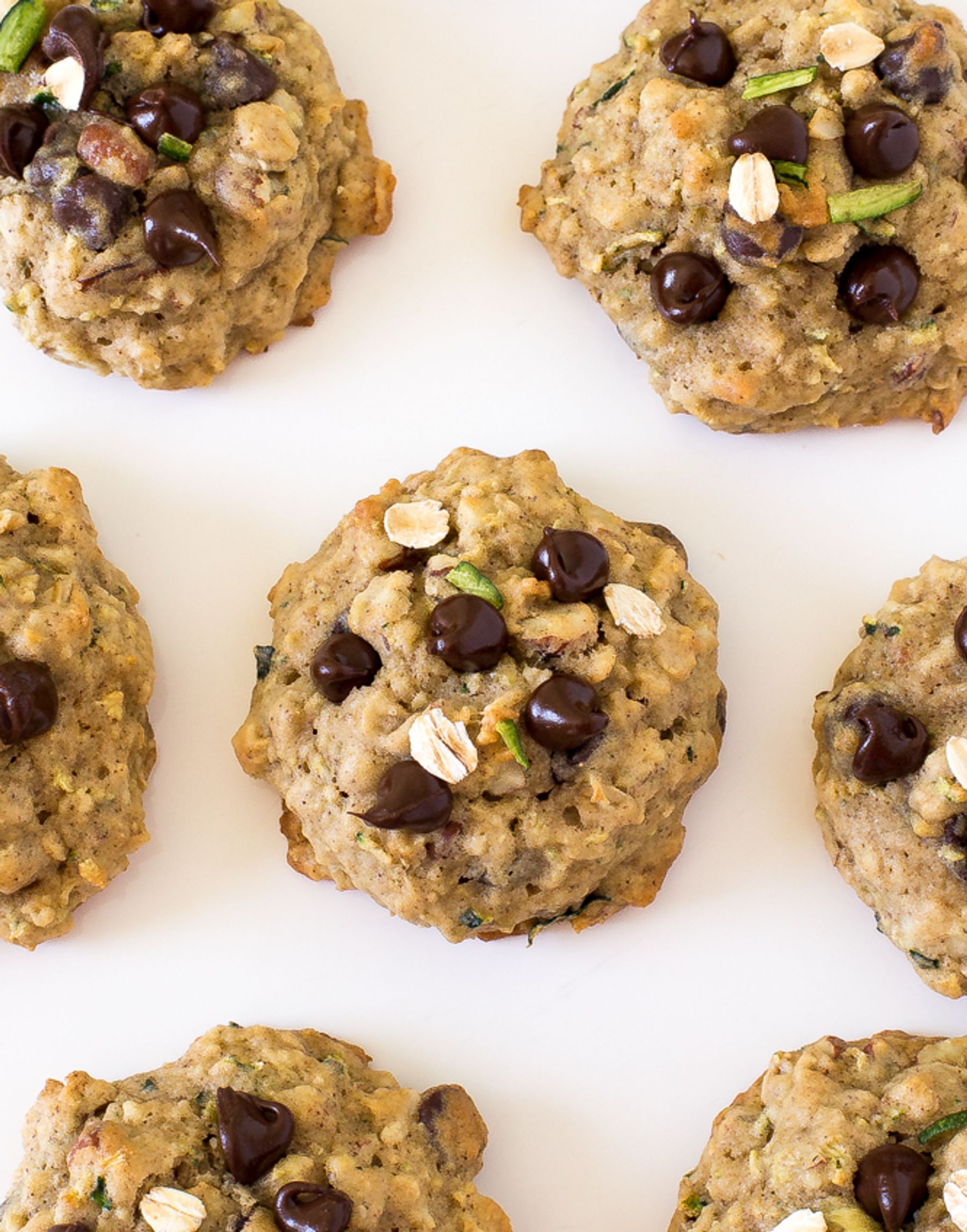 Zucchini Chocolate Chip Cookies. Loaded with oats, chocolate chips, zucchini and nuts!
