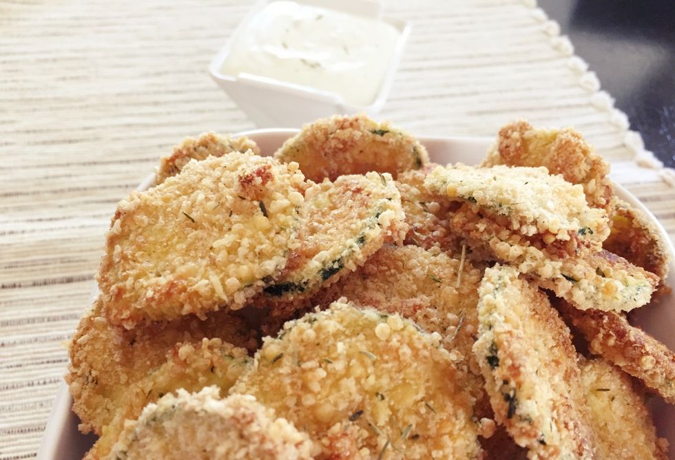 Baked zucchini chips dredged in parmesan,a healthy appetizer,promised to satisfy the biggest picky eater!
