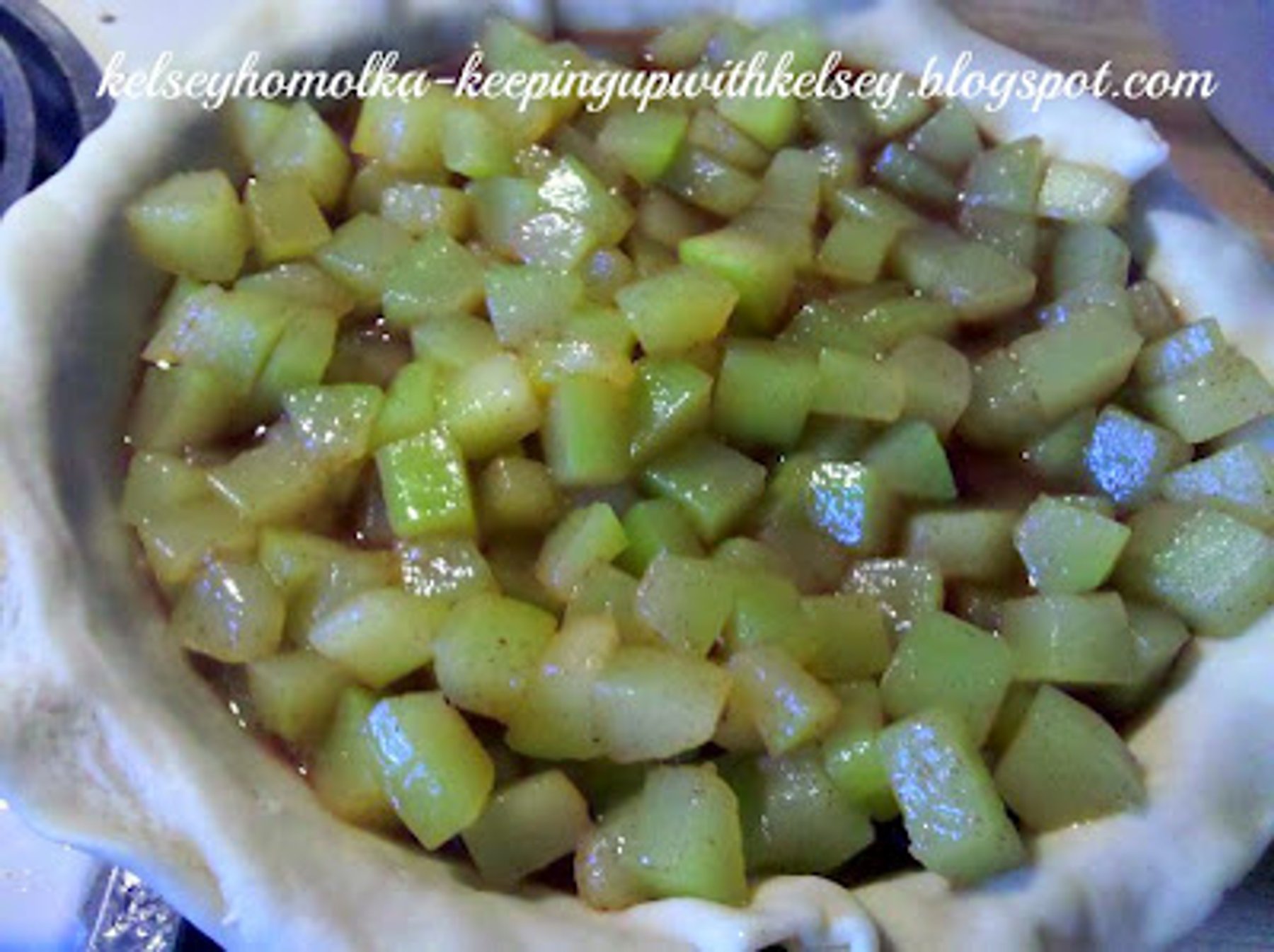1. Peel and cut lengthwise and scoop out the seeds. The slice into cuts like apples (or like my pictures you can choose to cube them) 2. Cook zucchini in small amount of water for ten minutes and drain...