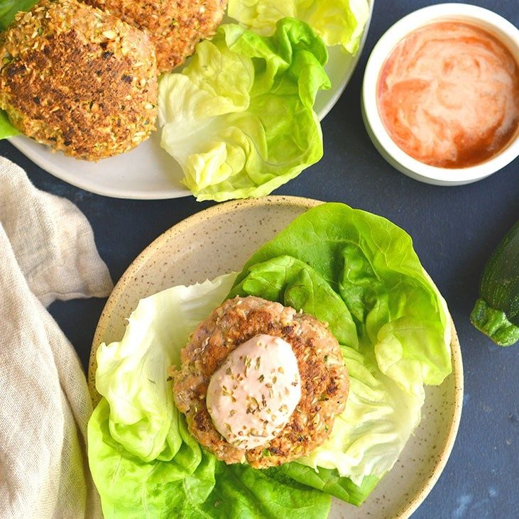 Zucchini Salsa Turkey Burgers! A fusion of salsa and zucchini flavors packed into a grilled turkey burger. Topped with a 2-ingredient salsa Greek yogurt dressing to make a flavorful veggie packed burgers that's unbelievably good. Gluten Free + Low Calorie