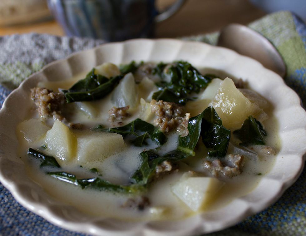 A spicy blend of sausage, garlic, potato, kale and parmesan. Perfect for warming up cold days!